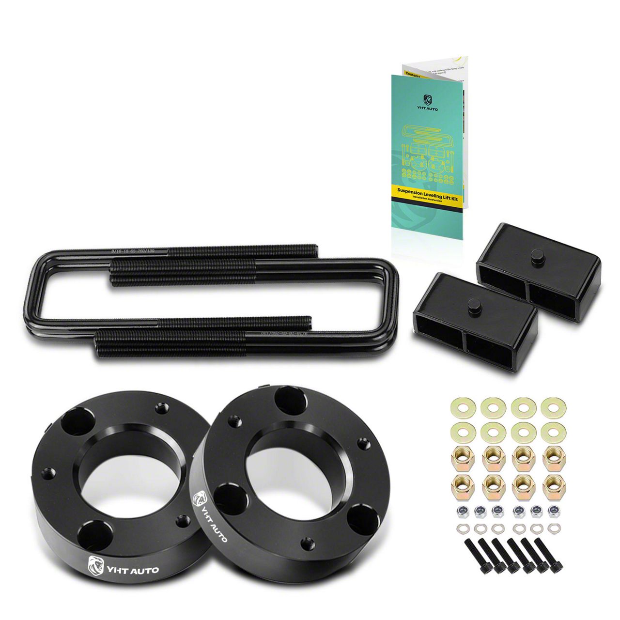 Construction and Appearance. Built from high-quality steel and aluminum, this kit includes durable spacers, lift blocks, and U-bolts designed to withstand tough road conditions. The combination of these materials ensures strength and longevity, making it ideal for everyday driving and off-road adventures.