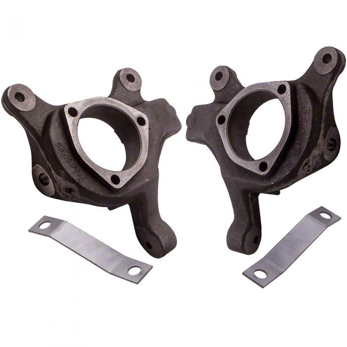 Durable Suspension Elevation. The Lift Spindles are designed to provide a reliable 3-inch front lift, improving ground clearance and suspension geometry without compromising ride quality. Built for strength and performance, these spindles deliver a simple yet effective way to accommodate larger tires while maintaining factory steering and alignment characteristics. They fit 1999–2006 two-wheel drive Chevrolet Silverado 1500 models and serve as a direct replacement for stock components.