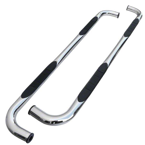 Robust Build Quality. These side step bars are manufactured from high-grade 3-inch wide tubular stainless steel for strength and corrosion resistance. These bars are then machine formed incorporating 90-degree bends on either end, giving them a streamlined style. Meanwhile, the step pads are precision-molded from high-quality polyethylene offering resistance to deterioration. Finally, these step bars are finished in polished chrome for classy looks.