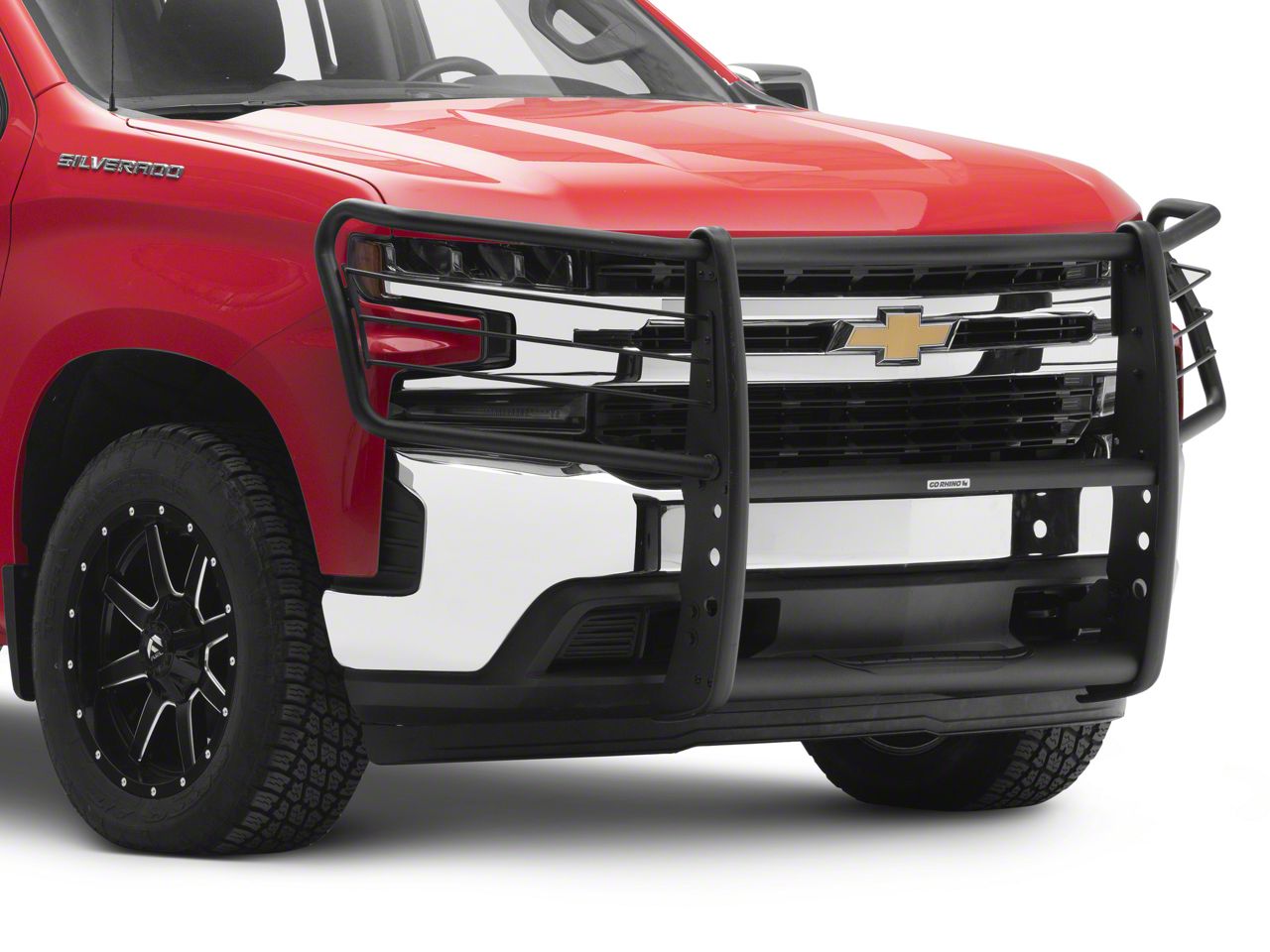 Rugged Styling. Add protection to your ride and elevate the strong appeal of your Silverado with this 3100 Series StepGuard Grille Guard; Black. Features strong geometry, clean bends, precision machined cuts, it adds a robust feel to your vehicle as well as protection against obstacles and debris.