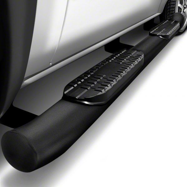 Enhanced Side Protection. The 4-Inch Oval Curved Side Step Bars in Black offer robust protection for your vehicle while providing a convenient stepping point for easy entry and exit. Designed to seamlessly integrate with factory parts, these side step bars are essential for enhancing the functionality and style of your truck.
