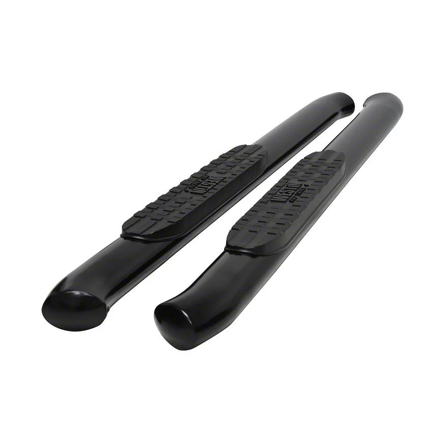 All-Black and Tough. Engineered to handle various off-road hazards, these Pro Traxx Side Step Bars were crafted using heavy-duty, rust-resistant steel. The step pads feature a wear-resistant, injection-molded polymer construction to keep your footings secure. Additionally, each 4-inch tubing comes with vehicle-specific brackets to mount tight and high for extreme off-roading. Moreover, this pair of steel frameworks is fortified by a high-quality, black powder-coated finish that reinforces your Regular Cab’s appealingly bold exterior.