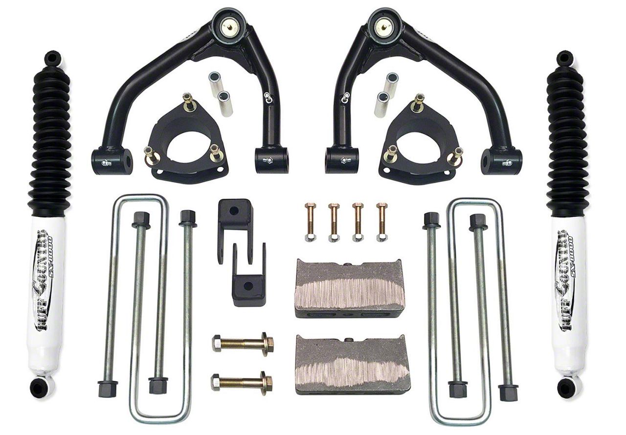 High-Performance Suspension Lift Kit. The Tuff Country 4-Inch Upper Control Arm Suspension Lift Kit with SX8000 Shocks is designed to provide your Silverado 1500 with increased ground clearance and improved off-road performance. Built with strict attention to detail and produced in a state-of-the-art facility, this lift kit includes application- and vehicle-specific properties to ensure optimal fit and function. The SX8000 shocks are tailored to deliver a smooth ride while enhancing the truck’s ability to handle rugged terrain.