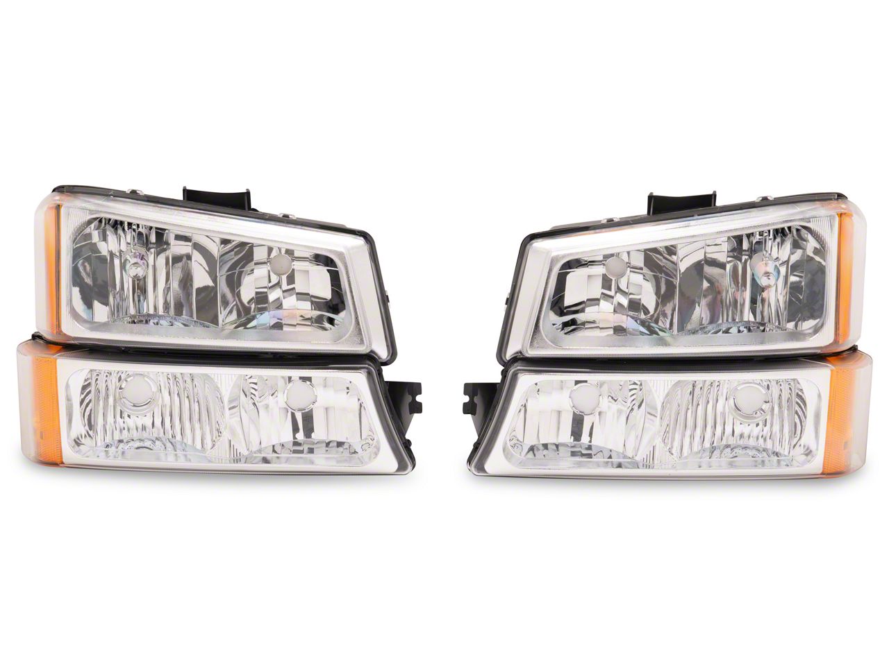 Application. These 4-Piece Headlights with Amber Corner Lights; Chrome Housing; Clear Lens are designed to fit 2003-2006 Chevrolet Silverado 1500 models equipped with halogen headlights. Driver and passenger side included. Reuses factory bulbs.CA Residents: WARNING: Cancer and Reproductive Harm - www.P65Warnings.ca.gov