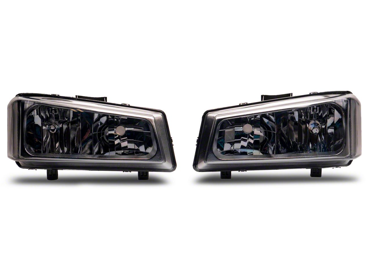 Application. These 4-Piece Headlights with Clear Corner Lights; Black Housing; Smoked Lens are designed to fit 2003-2006 Chevrolet Silverado 1500 models equipped with halogen headlights. Driver and passenger side included. Reuses factory bulbs.CA Residents: WARNING: Cancer and Reproductive Harm - www.P65Warnings.ca.gov
