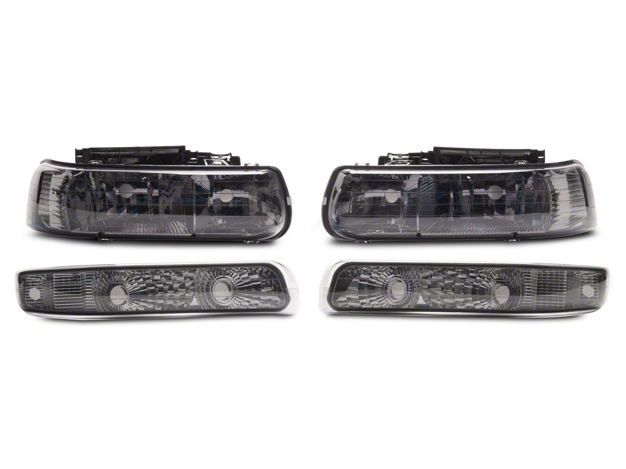 Application. These 4-Piece Headlights with Clear Corner Lights; Black Housing; Smoked Lens are designed to fit 1999-2002 Chevrolet Silverado 1500 models equipped with halogen headlights. Driver and passenger side included. Reuses factory bulbs.CA Residents: WARNING: Cancer and Reproductive Harm - www.P65Warnings.ca.gov