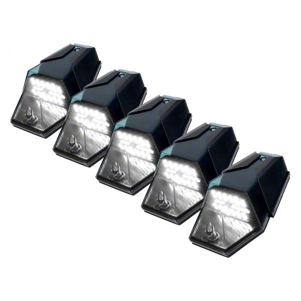 Application. This 5-LED Jewel Series Smoked Roof Top Cab Clearance Light Kit fits universal applications.