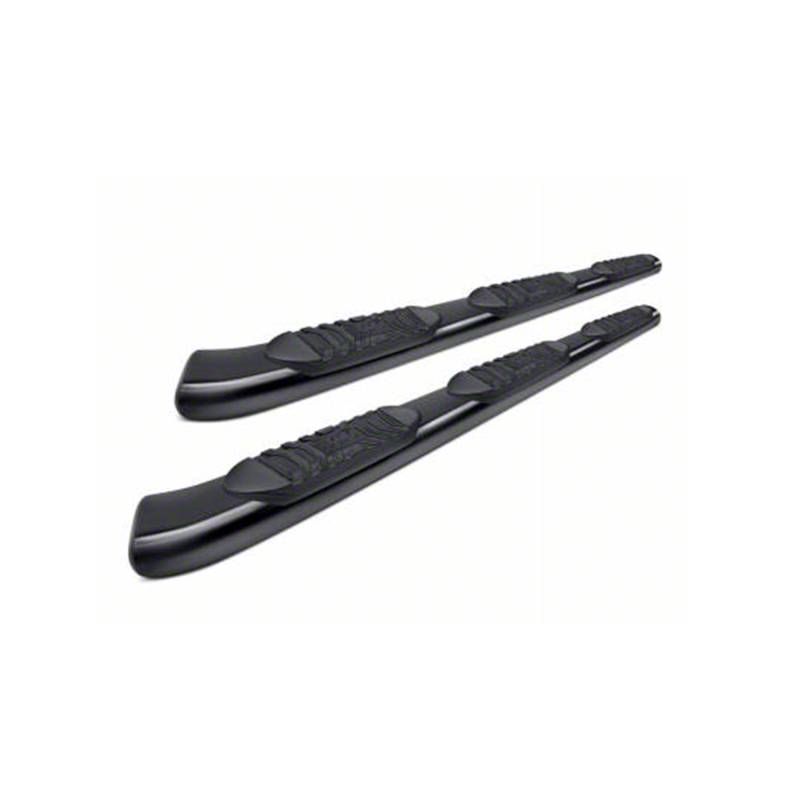 Heavy Duty Construction. These Extreme Wheel-to-Wheel Side Step are manufactured from heavy duty, 5-inch diameter, oval mild steel tubing for superior strength and rigidity. These Side Steps are then completed in a gloss black powder-coated finish for excellent durability and long lasting corrosion resistance. As part of the final assembly a set of rugged non-slip step pads are installed.