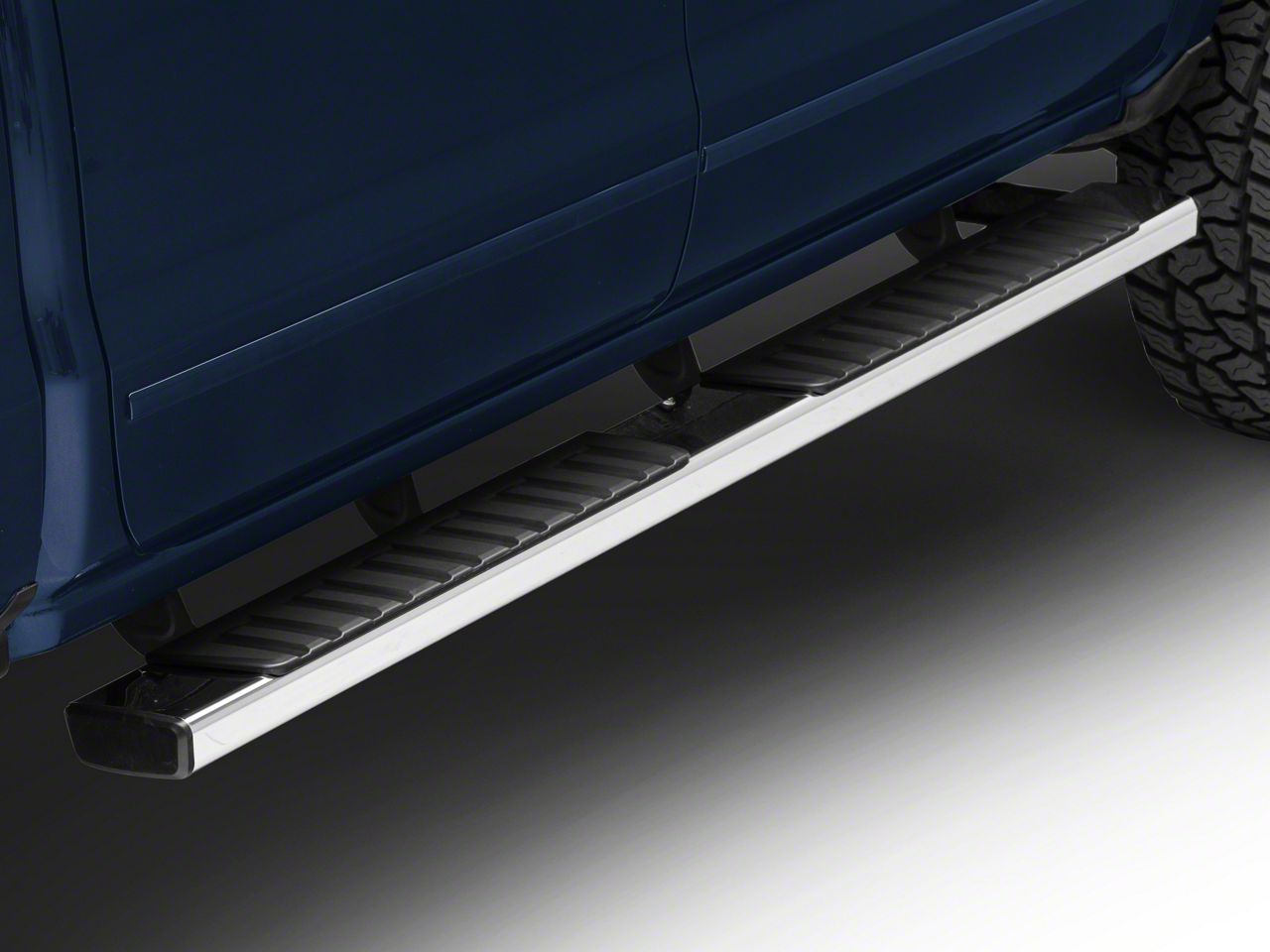 Function and Style. A set of polished stainless steel Running Boards are a great and practical upgrade for any Chevrolet Silverado. These Running Boards provide a convenient 6-inch wide step for easy entry in and out of your 2007-2018 Chevrolet Silverado 1500 Crew Cab, all while giving it a clean, modern appearance. As an added bonus, these Running Boards will help to shield your vehicle's body and paint from stones and road debris that get kicked up while driving.