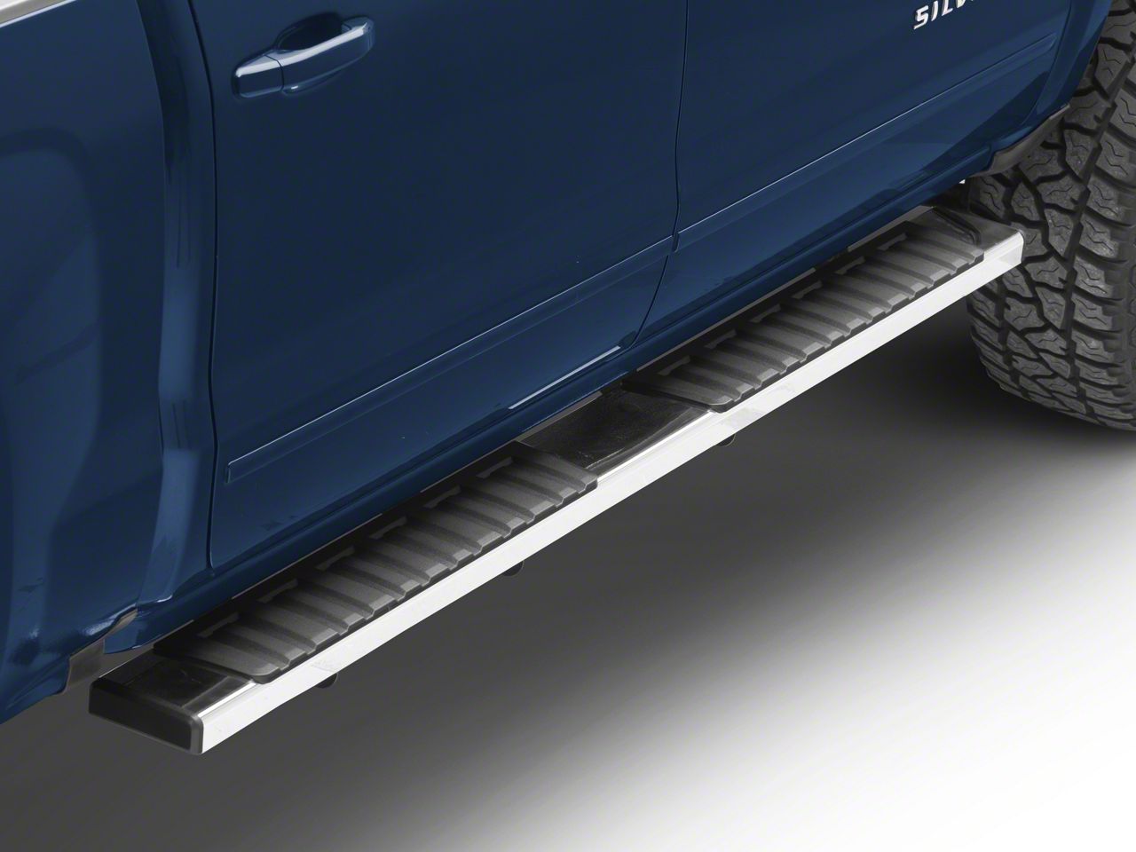 Sleek Design And Enhanced Accessibility. The Six-Inch Wide Flat Running Boards provide a stylish and functional upgrade for your Silverado 1500 Crew Cab. The wide, flat design ensures ample footing for safe entry and exit, while the polished finish adds a sleek, modern touch to your truck.