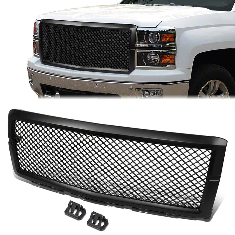 Application.The Badgeless Diamond Mesh Upper Replacement Grille fits 2014-2015 Chevrolet Silverado 1500s.