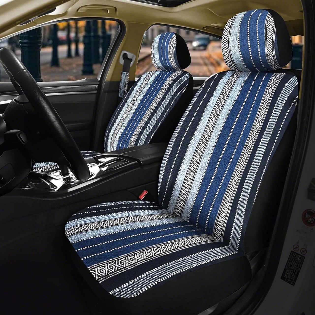 Baja Saddle Blanket Front Seat Covers; Blue Stripes (Universal; Some Adaptation May Be Required)