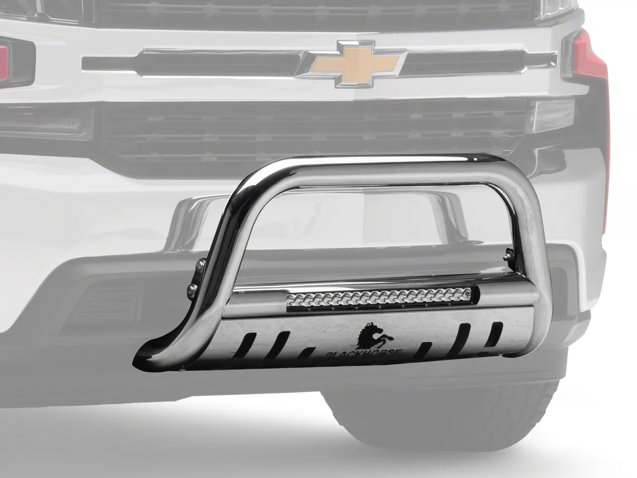 Perks. This Beacon Bull Bar comes with a removable skid plate and a 20-inch LED light bar pre-installed in the crossbar of the bull bar.