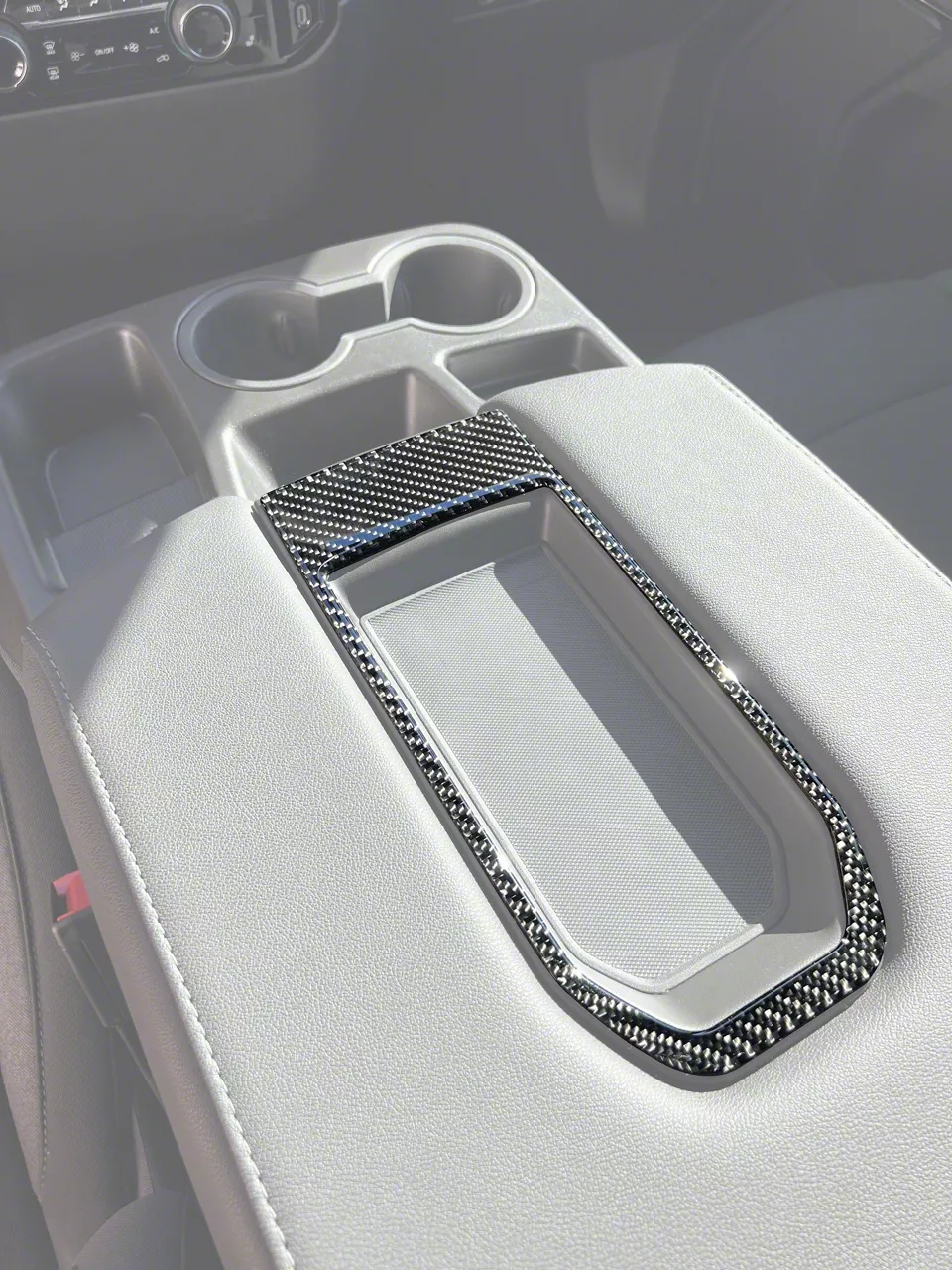 Bench Seat Center Console Upper Accent Trim; Domed Carbon Fiber (22-26 Silverado 1500)