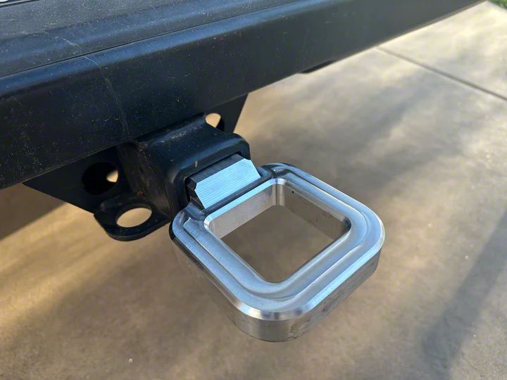 Construction and Appearance. Crafted from solid billet aluminum, this tow hook features a durable raw metal finish that can be painted to match your vehicle’s aesthetic. Its high-strength design ensures long-lasting performance and resistance to wear.