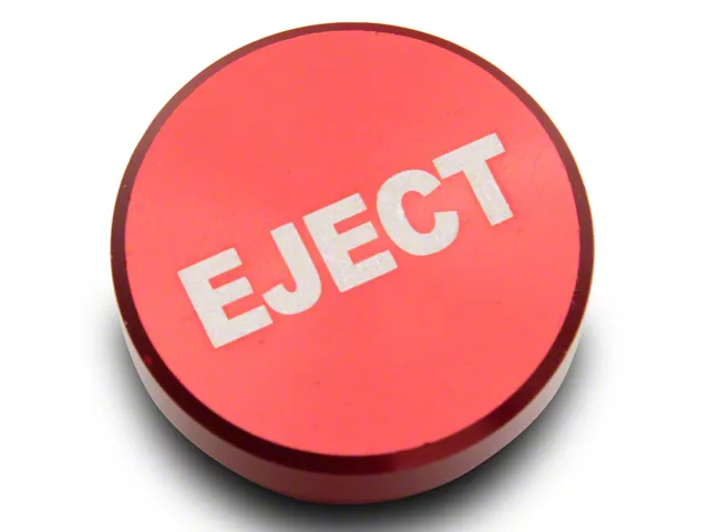 Eject Button Lighter Plug. Replace that old malfunctioning stock cigarette lighter plug with a humorously themed red anodized, lighter plug delete that features the word "Eject" in white text. This Eject Button is a fun way to cover the cigarette lighter power port in your car or truck.