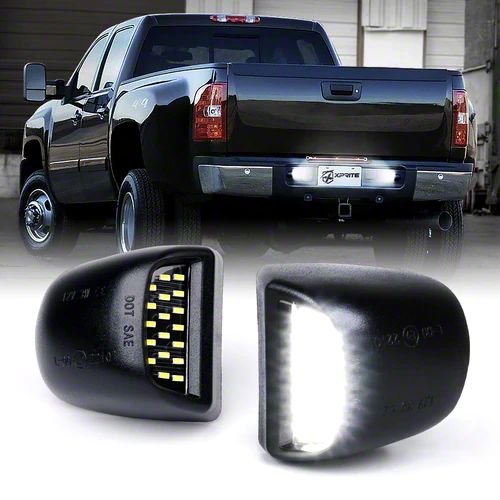 Light Up the Night. Give the rear end of your Silverado a fresh look with bright new LED License Plate Light Assemblies from AmericanTruck. Whether hitching, unhitching, loading, or unloading, more light at the rear of your truck will make all activities in the dark much easier. Changing the tiny incandescent bulbs in your license plate lights for these new light assemblies with long-life ultra-bright LEDs will only serve to help you in the future. Â