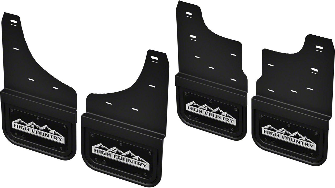 Black Wrap No-Drill Mud Flaps with High Country Logo; Front and Rear (19-26 Silverado 1500 w/o Super Cruise, Excluding ZR2)Find parts that fit my vehicle