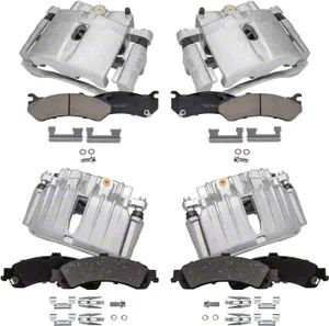 Brake Calipers with Ceramic Brake Pads; Front and Rear (01-06 Silverado 1500 w/ Dual Piston Rear Calipers)