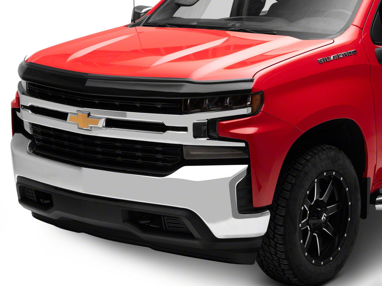 Deflects Bugs. This Bug-Guard or Hood Buggard protects your hood from damage and redirects airflow to keep insects from hitting your windshield. This Bug-Guard or Hood Buggard protects your hood from damage and redirects airflow to keep insects from hitting your windshield. It's designed to enhance your Silverado and is manufactured from impact-modified composite material for protection. Hardware is included for an effortless installation.