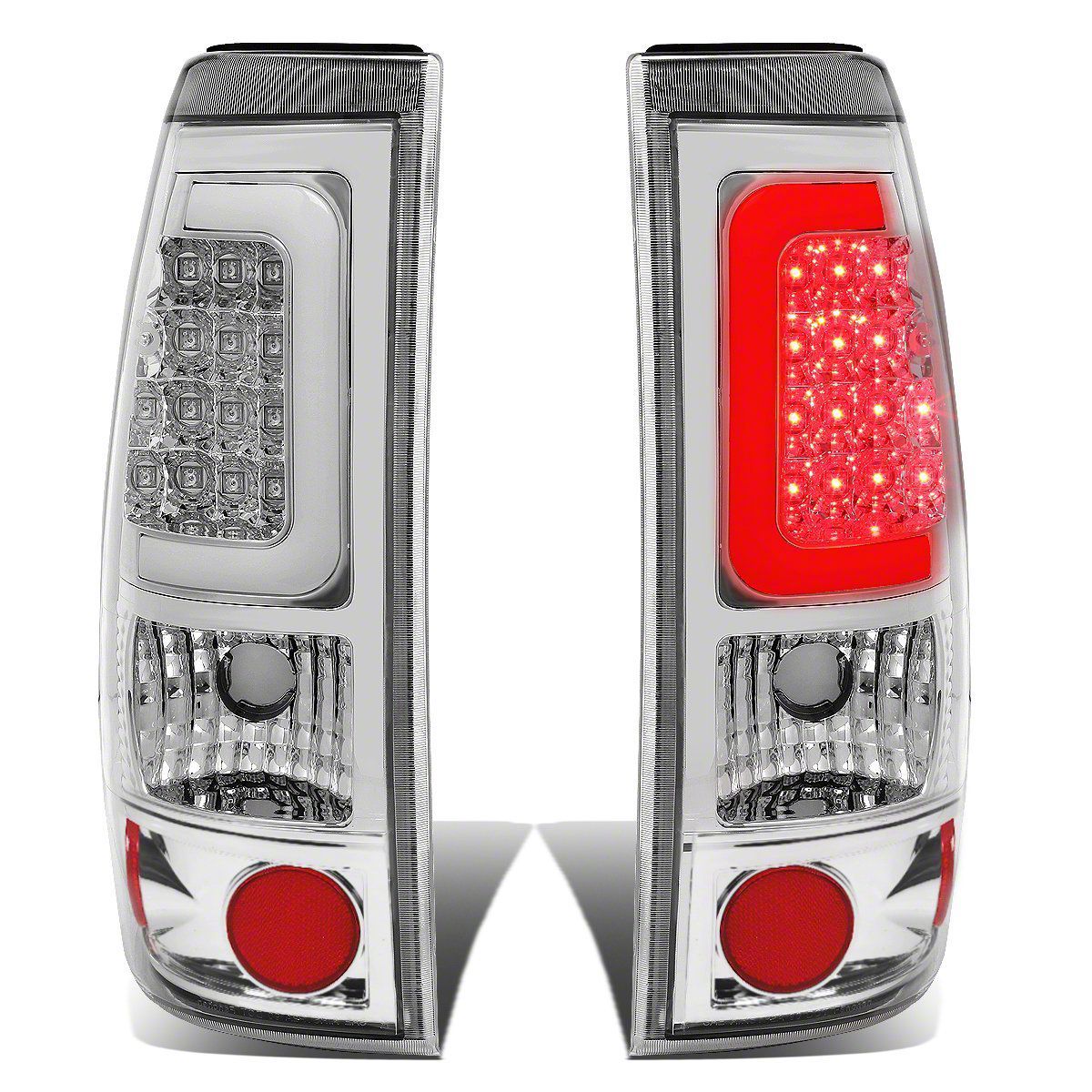Application. The C-Bar LED Tail Lights; Chrome; fits all 1999-2002 Silverado 1500 Fleetside.