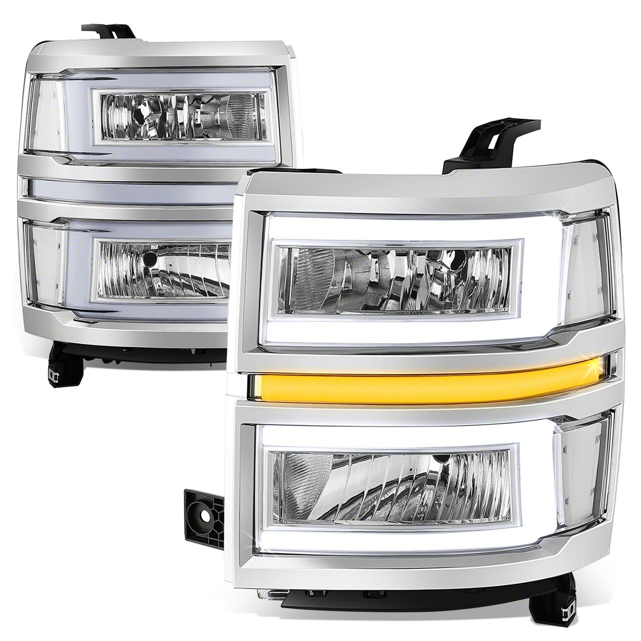 Application. This C-Shaped LED DRL Sequential Headlights with Clear Corners fits 2014-2015 Chevrolet Silverado 1500 models.