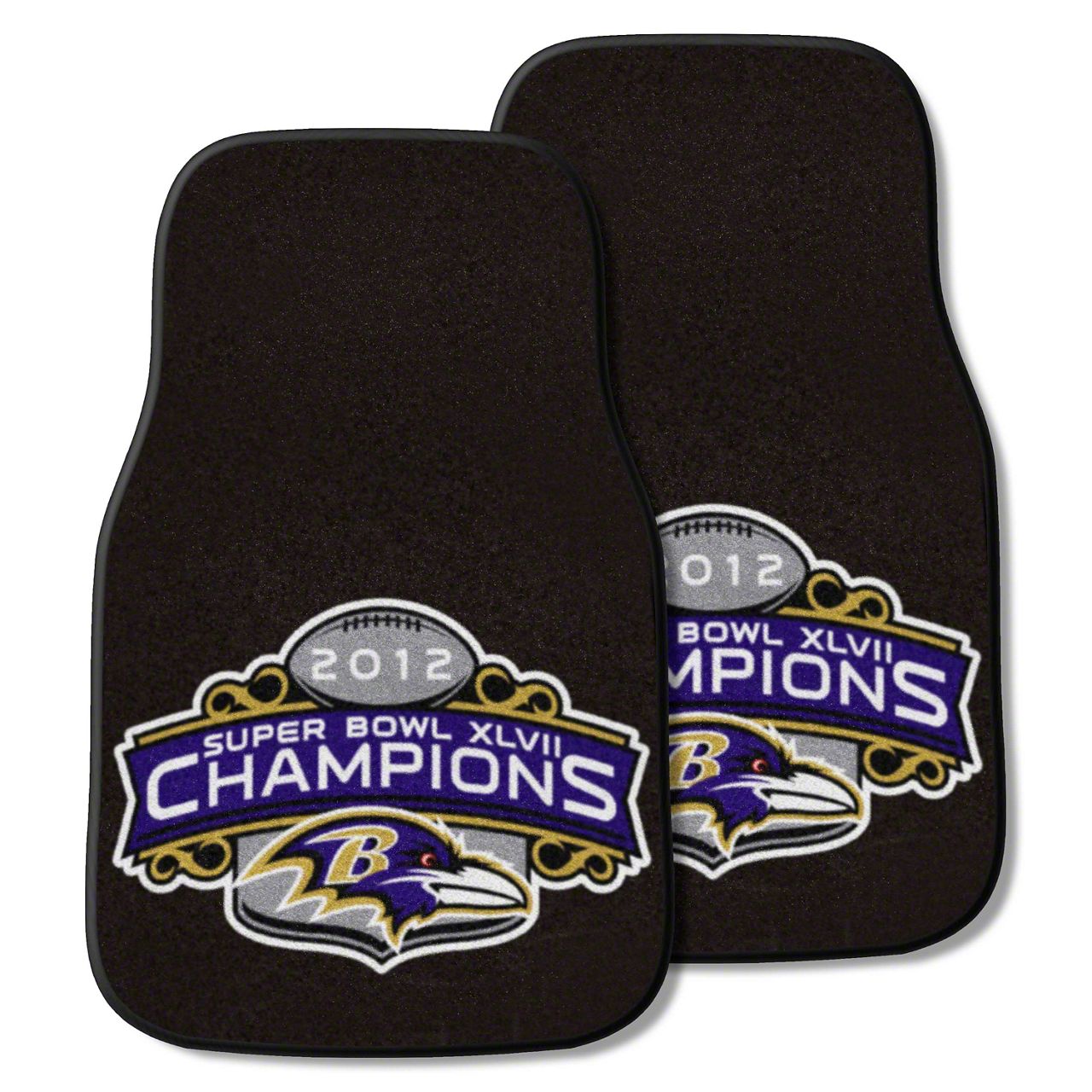 Carpet Front Floor Mats with Baltimore Ravens 2013 Super Bowl XLVII Champions Logo; Black (Universal; Some Adaptation May Be Required)