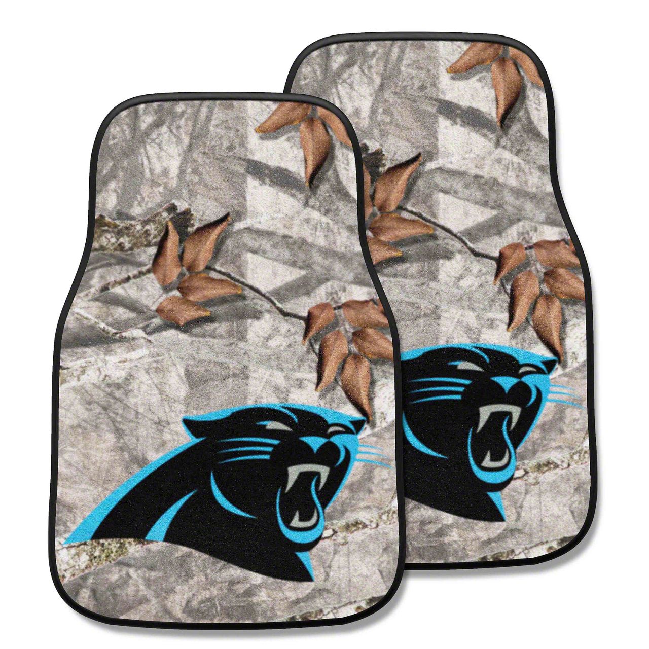 Carpet Front Floor Mats with Carolina Panthers Logo; Camo (Universal; Some Adaptation May Be Required)