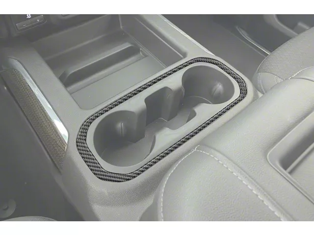 Refined Interior Enhancement. Upgrade your Silverado's cabin with this Forged Carbon Fiber Center Console Cup Holder Surround Accent Trim. The unique carbon fiber finish delivers a bold and modern aesthetic, elevating the look of your interior. Designed with precision, it fits perfectly around the cup holder area, offering a high-end appearance that complements your truck’s existing features.