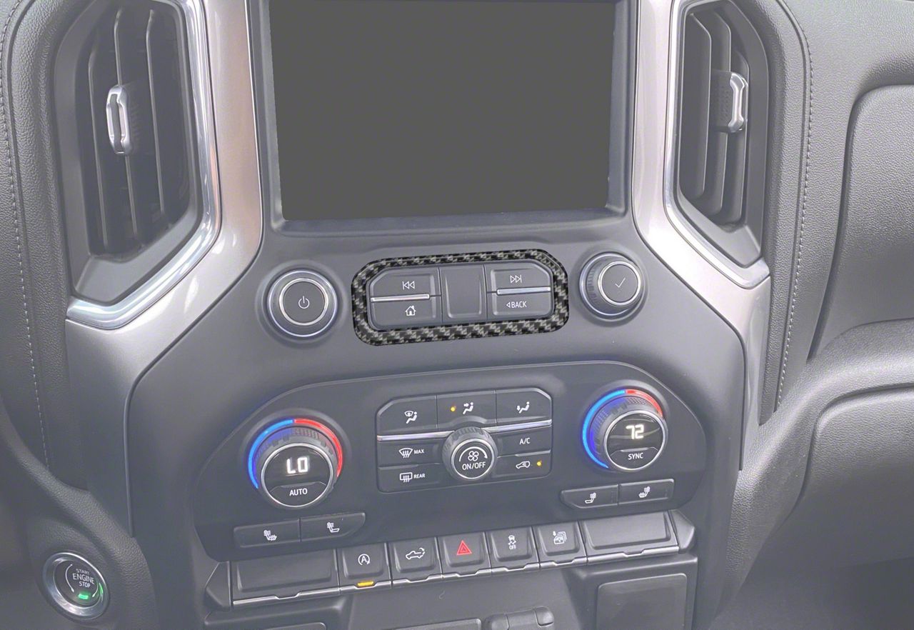 Stylish Center Dash Accent. This Center Dash Accent offers a premium, sleek upgrade for your 2019-2021 Chevrolet Silverado 1500 and 2022 Chevrolet Silverado 1500 LTD models. Designed with a glossy black forged carbon fiber finish, it enhances the overall look of your vehicle's interior, adding a luxurious and modern touch to your dash.