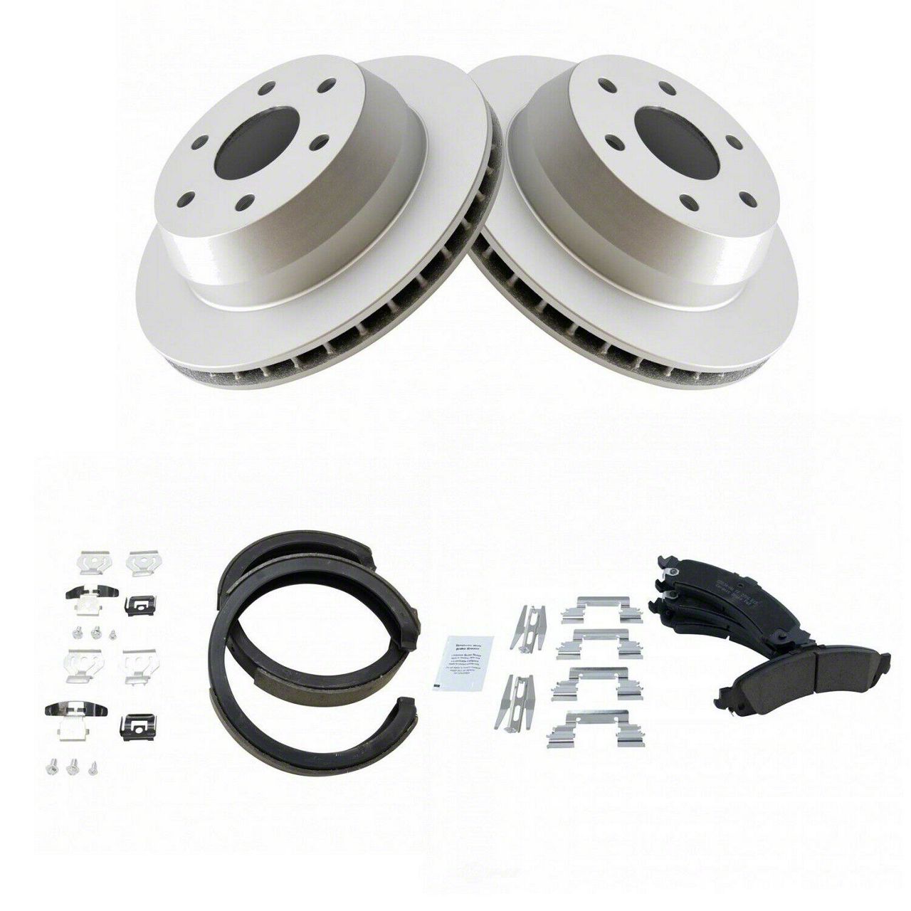 Description. Disc Brake Kit; Ceramic Brake Pad and Rotor Kit with Parking Shoes; Rear