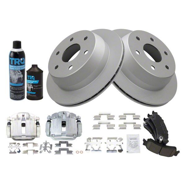 Rear Disc Brake Kit with Ceramic Pads and Calipers (BKA23357) by TRQ®. The high-quality TRQ disc brake kit with ceramic pads and calipers is just the thing for DIY repair enthusiasts seeking a balance between the price and quality. Made to OEM standards, TRQ replacement brake parts fit and function just like the part installed in your vehicle from the factory. It will help rest assured that your steel stallion will work as it should and deliver safe braking.
