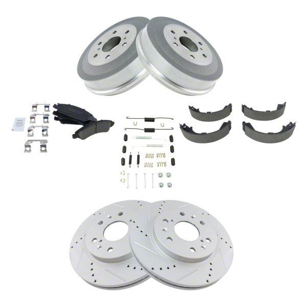 Slotted and Cross-Drilled Type. Incorporating superior positive molded brake pads, this Ceramic Performance 6-Lug Brake Rotor, Pad, and Drum Kit ensures consistent and reliable braking performance. The slotted and cross-drilled rotor type provides improved cooling and reduced brake fade, resulting in enhanced braking efficiency.