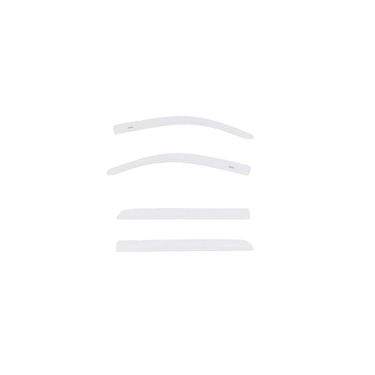 Sleek Window Protection. Add shade to your interior and block off rain and dust with this Color Match Low Profile Ventvisor Window Deflectors; Front and Rear; Summit White on your Silverado. Sporting a sleek structure, it minimizes wind noise, while also blocking off the top gap in your windows. It mounts with 3M adhesive, so you can be sure that it won't damage your paint or metalwork.