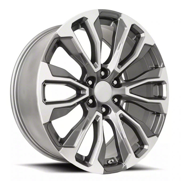 The 24x10 Denali 12-Spoke Replica Grey Machine Face 6-Lug Wheel underwent a thorough finishing process to make sure the wheel not only looks great, but that it can also handle the rigors of driving.