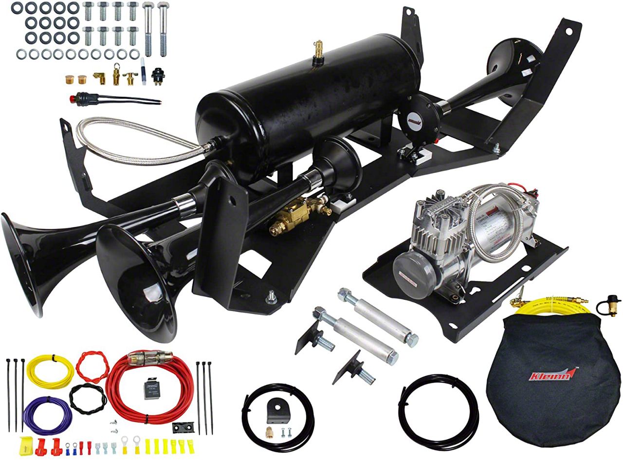 Quality Kit Components. This air horn system also comes with a waterproof 100% duty-cycle air compressor that is fully submersible and rated at 150 PSI. This compressor can easily inflate 37-inch tires. The horn is made of high-impact ABS trumpets with all-metal bases. It also comes with powder-coated mounting brackets.