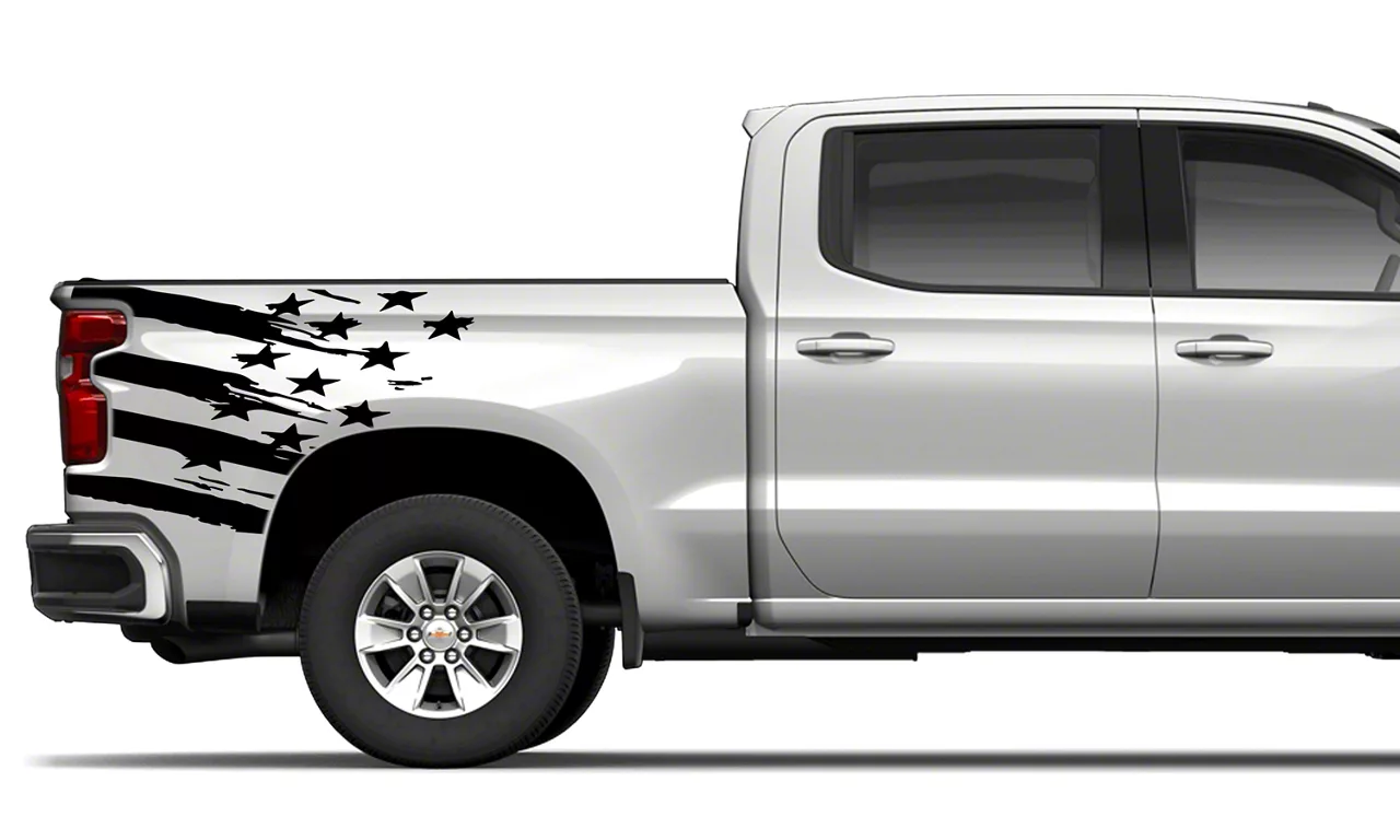 Application. This Distressed US Flag Bed Decal; Matte Black fits 2007-2026 Silverado 1500s.