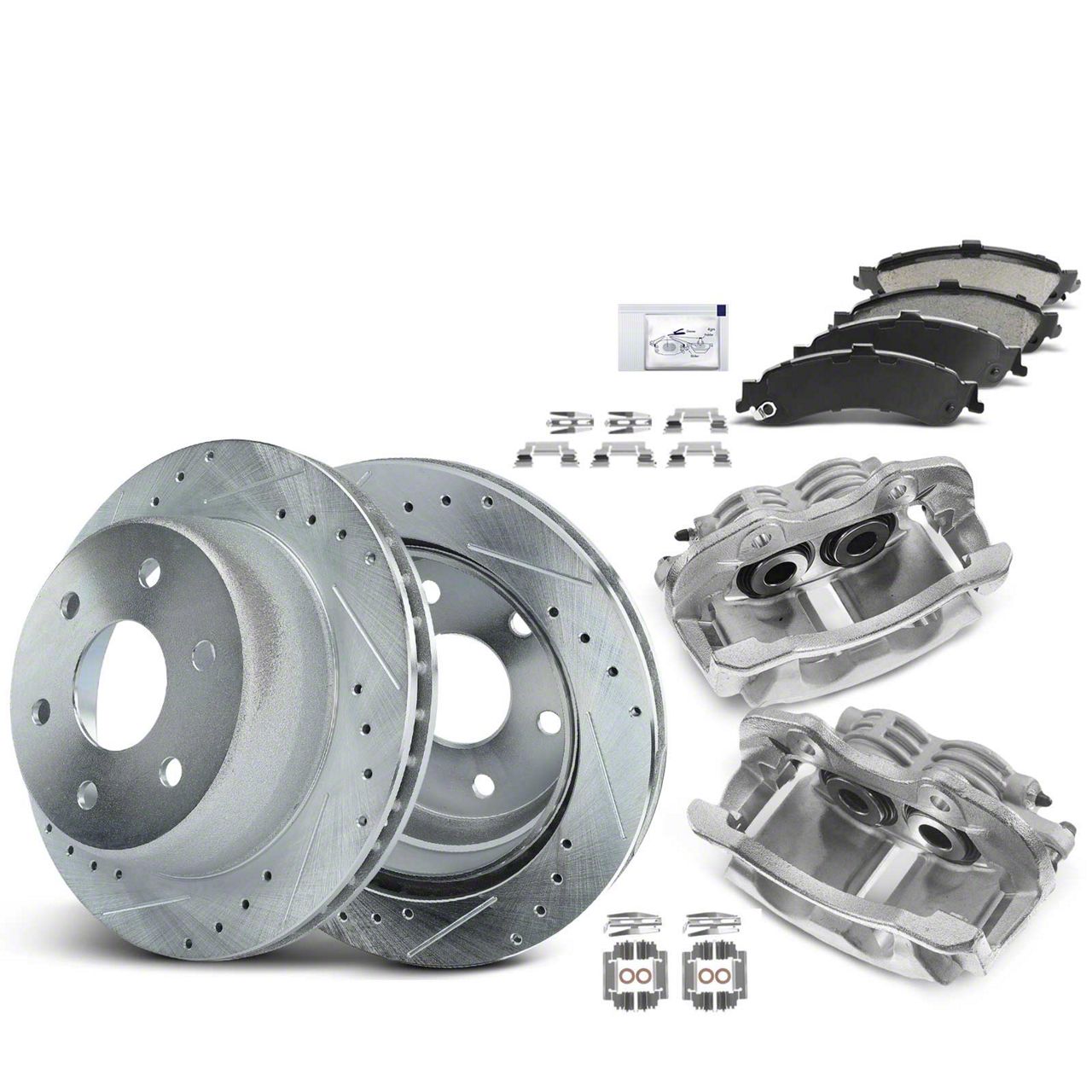 Drilled and Slotted 6-Lug Brake Rotor, Pad and Caliper Kit; Rear (01-06 Silverado 1500 w/ Dual Piston Rear Calipers)Find parts that fit my vehicle