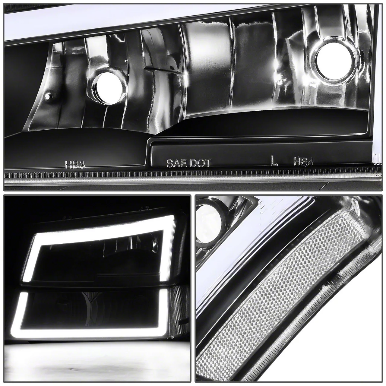 Modernized Lighting Upgrade. These Dual C-Bar LED DRL Headlights provide a significant visual and functional upgrade to your vehicle. The C-Bar LED daytime running lights enhance visibility during daytime drives while adding a modern aesthetic to the front end. With clear corners and a black housing, these headlights ensure a sleek, stylish appearance that stands out.