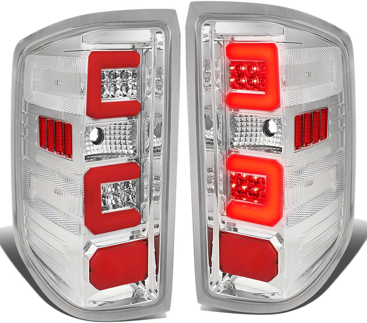 Safe and Stylish Tail Lights. These Dual Red C-Bar LED Tail Lights; Chrome instantly improve the safety and style surrounding your Silverado 1500. The sharper light will make those around you know what's happening and they'll look great at the back of your truck.