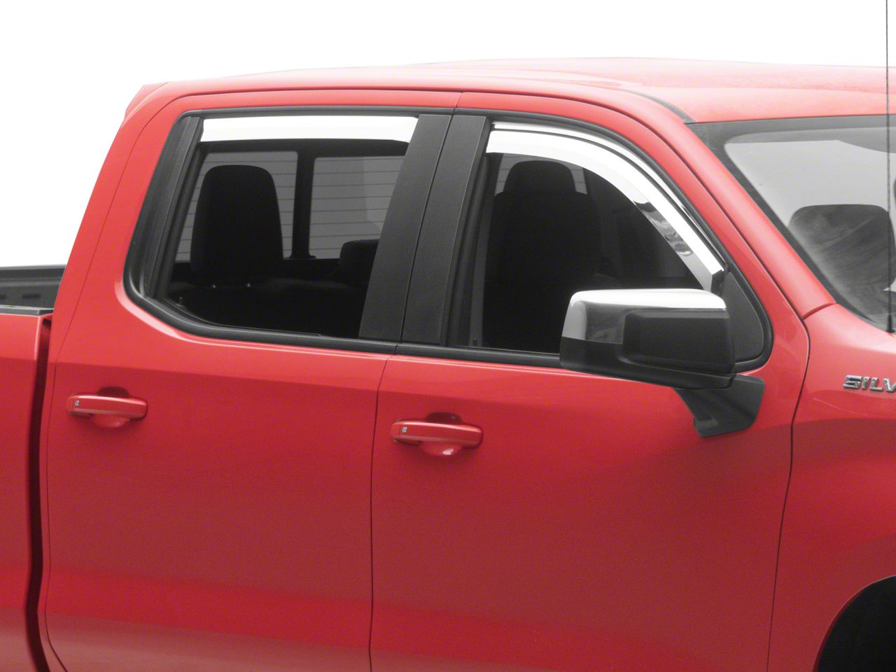 Application. These Element Chrome Window Visors with Channel Mount for the Front and Rear are designed to fit 2019-2026 Chevrolet Silverado 1500 Crew Cab models.
