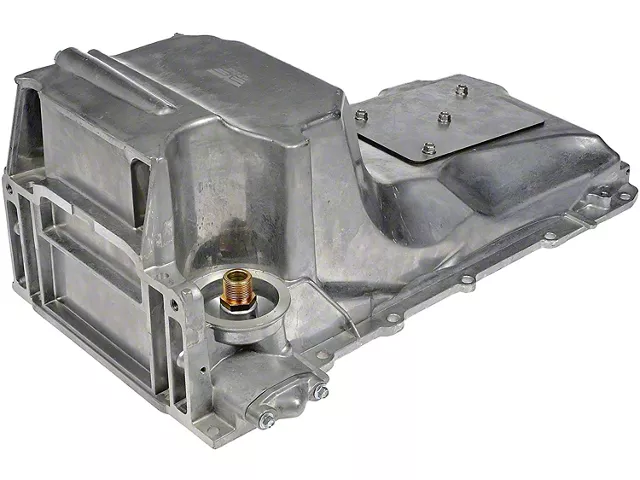 Engine Oil Pan and Level Sensor. Repair a damaged oil pan or sensor using this complete replacement part in your pickup truck. This oil pan assembly features a pan, drain plug, and an oil level sensor in one. The part can be changed all at once easily.