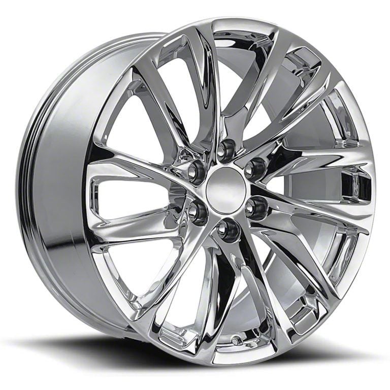 Application. This Escalade 12-Spoke Replica Chrome 6-Lug Wheel; 20x9; 28mm Offset, with a backspace of 6.102 Inch, 155mm and bolt pattern of 6 x 139.7mm (6 x 5.5-Inch), ensures proper alignment and stability. It's designed to fit the 2019-2026 Silverado 1500 models, enhancing both the look and the overall driving experience. Sold individually.