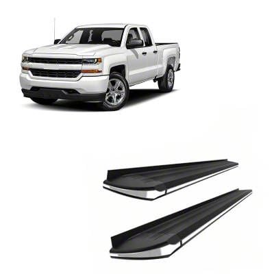 Sleek and Durable Running Boards. Elevate the functionality and style of your Silverado 1500 Double Cab with Exceed Running Boards in Black. These running boards are meticulously crafted from UV-resistant, high-impact ABS plastic, ensuring longevity and resilience against the elements.