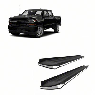 Efficient Entry. Exceed Running Boards provide a secure, 5.50-inch-wide flat stepping surface, facilitating easy entry and exit from your Silverado. The strip design ensures a strong grip, enhancing safety with its low profile.