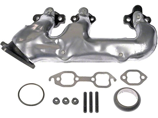 Passenger's Side Exhaust Manifold Kit. Repair a leaky exhaust manifold or replace an aging manifold using this passenger's side repair kit. The kit features a manifold as well as the necessary seals and hardware to install this replacement in your vehicle. The set is a powerful tool for upgrading your truck's exhaust system, and it's a simple replacement you can make.