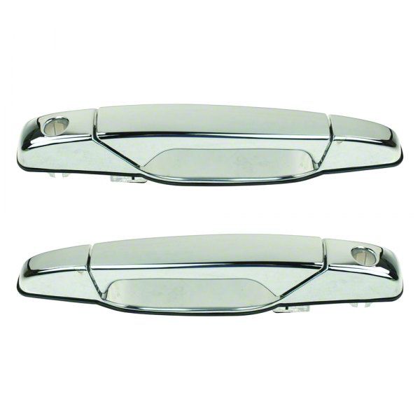 Exterior Door Handle Replacement. The front chrome exterior door handles provide a reliable means to open and close vehicle doors securely. Designed to replace worn or damaged handles, they restore the original functionality and appearance. Ensuring proper fit and operation, these handles contribute to vehicle safety and convenience.