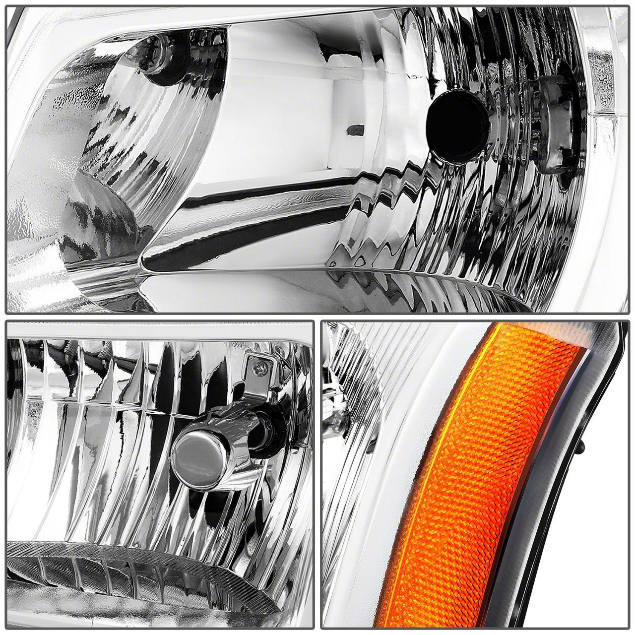 Factory Style Headlights with Amber Corners; Chrome Housing; Clear Lens