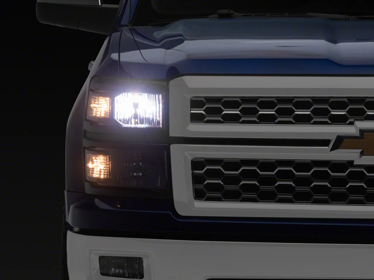 A Lighting Revolution. Instantly upgrade your Chevrolet Silverado 1500's front end with these Factory Style Headlights featuring clear corner lenses. The Factory Style Headlights' crystal-clear optics and polished chrome housing provide a sleek, modern appearance that complements your Chevrolet Silverado 1500's rugged style.