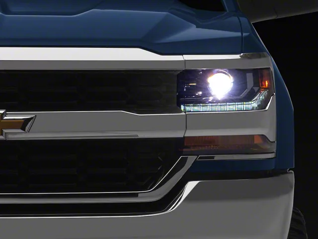 Application. The Factory Style LED DRL Projector Headlight; Chrome Housing; Clear Lens; Driver Side fits 2016-2018 Silverado 1500 with Factory HID Headlights.